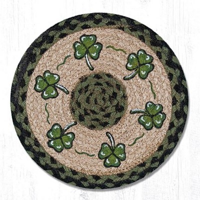 Earth Rugs Shamrock Printed Round Trivet – 10"x10" Braided Jute Table Mat with Classic Lucky Clover Design