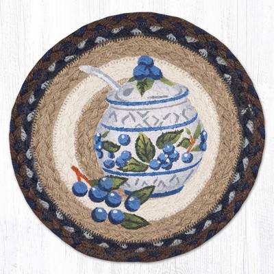 Earth Rugs Jam Jar Blueberry Round Trivet – 10" Printed Fruit Design on Natural Braided Jute