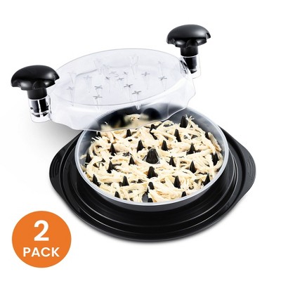 HOM Chicken Shredder with Transparent Cover, Ergonomic Handles & Anti-Slip Base - Easy Cleaning, Brush Included (2-pack, black)