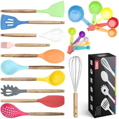 Kaluns Kitchen Utensils Set, 21 Piece Wood and Silicone, Cooking Utensils, Dishwasher Safe and Heat Resistant Kitchen Tools