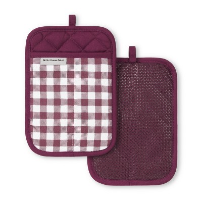 KitchenAid Gingham Pot Holder 2-Pack Set, Beet, 7"x10"