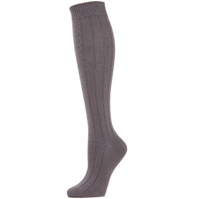 Memoi Pointelle Braid Chunky Knit Knee-High Socks Dark Gray Heather One Size