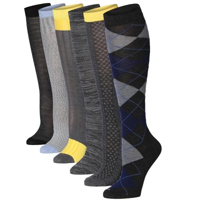 Tipi Toe Womens 6 Pairs Colorful Textured Space Dye & Argyle Striped Patterned Knee High Socks