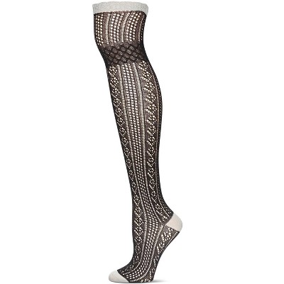 Memoi Women's Cozy Glitz Over The Knee Socks Black One Size