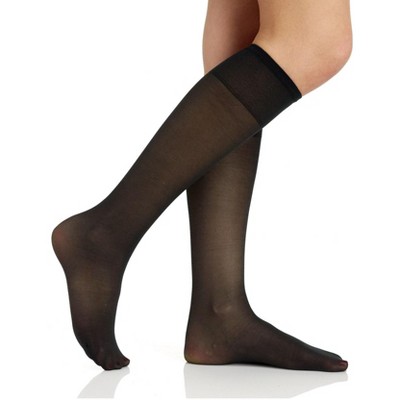 Women's Sheer Fashion Knee Highs - A New Day™ Black One Size Fits Most: Solid Pattern, Nylon-Spandex Blend, Closed Toe