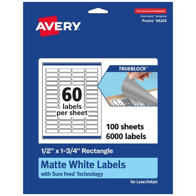 Avery Matte White Rectangle Labels, 1" x 2"