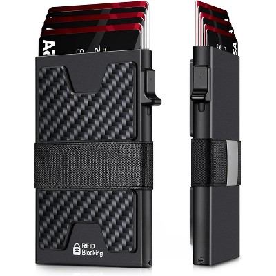 LEVEN SIXTEEN Men's Smart Pop-Up RFID Wallet, Holds 8-10 Cards, 2 ID Windows, Money Clip, Carbon