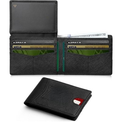 LEVEN SIXTEEN Men's Genuine Leather Bifold Wallet, RFID Blocking, 2 ID Windows