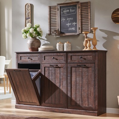 Triple Tilt Out Trash Can Cabinet, 20 Gallon Farmhouse 3-Tier Drawer and Adjustable Shelf, Hidden Wooden Sorting Trash Cabinet for Kitchen