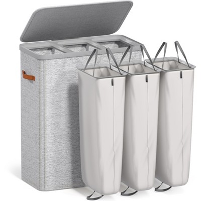 Sorbus 3-Compartment Laundry Basket with Removable Laundry Bag - Durable Organizer for Bathroom, Bedroom, or Laundry Room - Space Saving Design