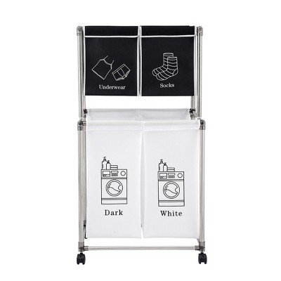 Laundry Basket Organizer with Lockable Wheels, Rolling Hamper with Hanging Rack & Shelf