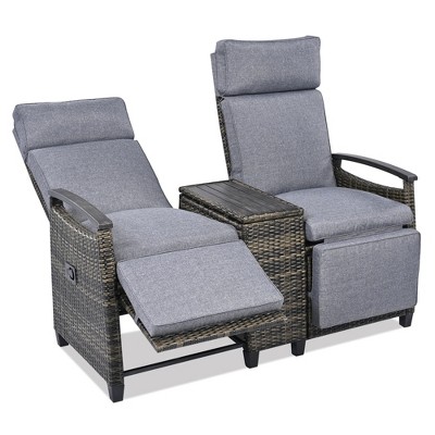 APRILSOUL 53.3"Patio Recliner Loveseat Chair, Adjustable Backrest Wicker Outdoor Lounge Chair Set