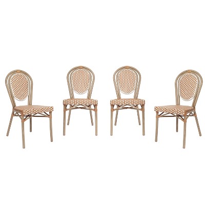 Flash Furniture 4 Pack Lourdes Indoor/Outdoor Commercial Thonet Bistro Stacking Chair, PE Rattan and Aluminum Frame