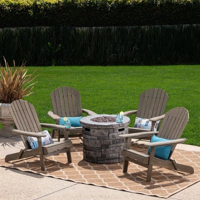 Maison 5pc Acacia Wood and Light Weight Concrete Adirondack Chair and Fire Pit Set - Gray - Christopher Knight Home