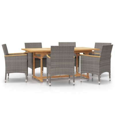 vidaXL Patio Dining Set Outdoor Dining Set Table and Chair Set for Garden - Gray 7 Piece with Cushions