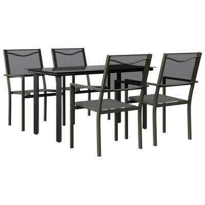 vidaXL Patio Dining Set Outdoor Table and Chair Black Steel and Textilene - 59.1" Table Length 4 Pieces