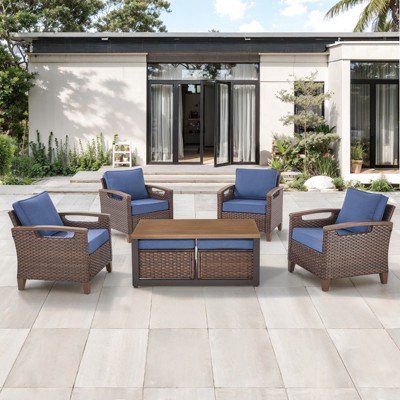 Belord Patio Wicker Chairs Lounge Club Chairs, All Weather Brown Wicker Outdoor Chair Set of 4 with Coffee Table and Ottoman for Porch Balcony
