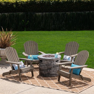GDFStudio Jasper Outdoor Acacia Wood 5 Piece Adirondack Chair and Fire Pit Table Set