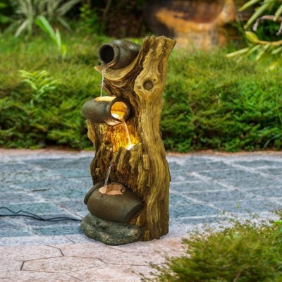 NAYSAYE Fountain Three Tier Tree Trunk Water Feature with Cascading Basins for Garden Patio, Brown, 12.4"*11.6"*37.8"