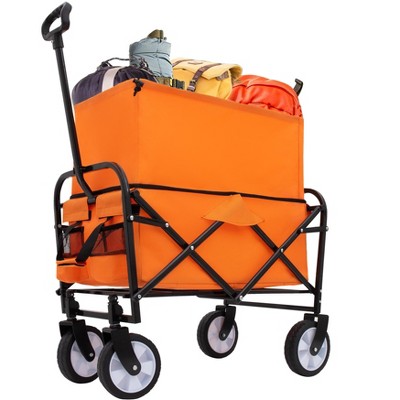 Minimeetall Strap Collapsible Foldable Wagon Cart Beach Wagon Heavy Duty Utility Cart Utility Wagon Grocery Cart orange