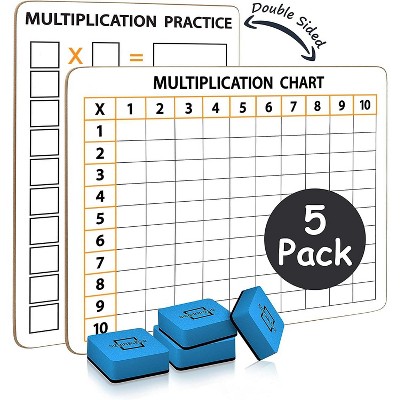 SCRIBBLEDO Multiplication Chart 9”x12” Dry Erase Boards 5-Pack