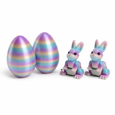 3D Printed Easter Bunny Eggs, 2-Pack Prefilled Surprise Egg Toys with Cute Bunny Inside, Flexible Fidget Toy for Easter Surprise Gift or Basket Filler