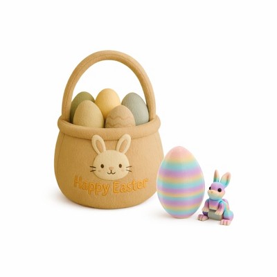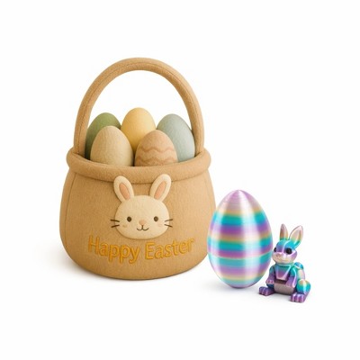 Easter Egg Basket Plush Toy with 3D Printed Bunny Surprise Eggs, Flexible Prefilled Easter Egs with Bunny, Soft Easter Egg Plush Toys, Easter Gift Set