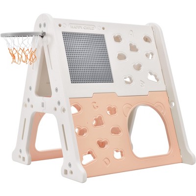 5-in-1 Toddler Climber Set – Basketball Hoop Playset with Building Blocks, Whiteboard & Tunnel – Christmas Gift forAges 1.5-4 Years