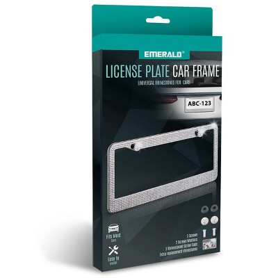 Emerald Bling Universal License Plate Frame, Rhinestone Sparkly Car Accessory with Hardware & Extra Rhinestones