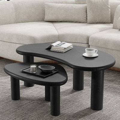 PexFix 34" Modern Black Nested Coffee Tables Set 2-Piece Irregular Organic Shaped Solid Wood Accent Tables for Home Office Living Room & Bedroom