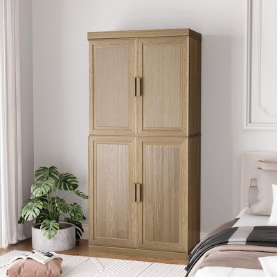 PexFix Side Panel Cabinet With 3 Rattan Doors Kitchen Storage Cabinet Modern Adjustable Legs