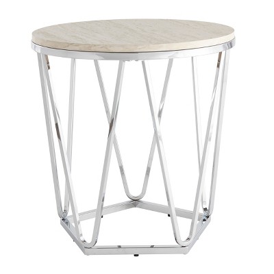 Luna Round Faux Stone End Table - Silver - SEI
