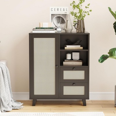SEVOBAL Sideboard Buffet Cabinet Storage Cabinet with Drawers Adjustable Shelf Accent Cabinet for Living Room Kitchen Entryway, Black, 15"*27.5"*33.8"