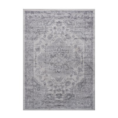 Bombay Floral Tile Patio Rug Ivory/Gray