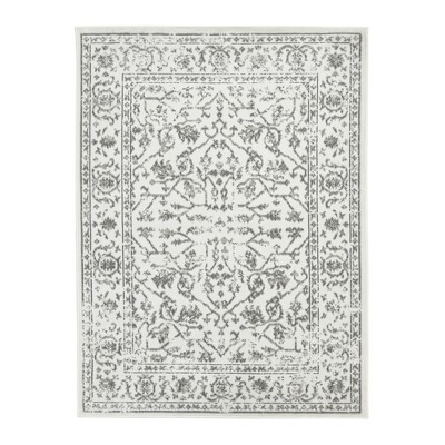 10' Gray and Dark Gray Floral Power Loom Runner Rug