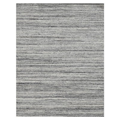 Charcoal And Ivory Wool Striped Hand Woven Area Rug