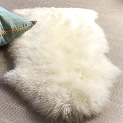 Home Mart Goods Ivory White New Zealand Super Thick Plush Natural Sheepskin Shag Rug - 28"x40"