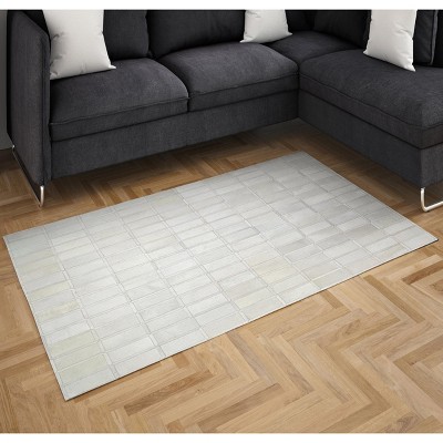 Home Mart Goods Ivory Beige Patchwork Leather Cowhide Cow Skin Modern Geometric Handmade Area Rug