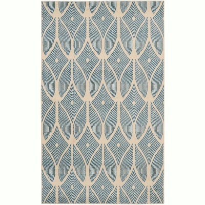 HomeStock Motif Printed Faux Rabbit Linear Blue White 8x10, Hand Tufted, Transitional Rug