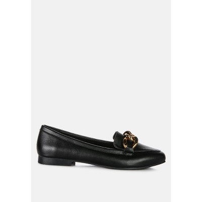 Chunky Metal Chain Faux Leather Loafers