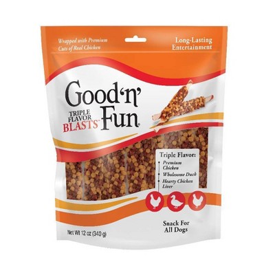 Good 'n' Fun Triple Flavor Blasts Rawhide Dog Treat with Chicken, Liver & Duck Flavor - 12oz