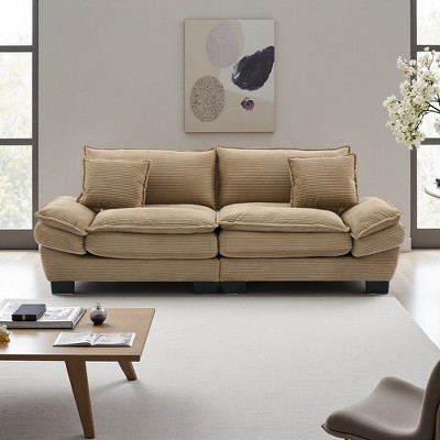 84" Corduroy Deep-Seat Loveseat Sofa with Pillows