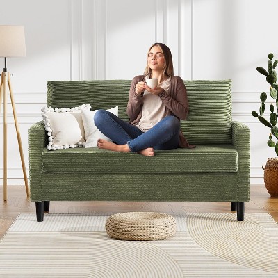 Bring home a comfy loveseat and cozy up your space while giving it an instant decor refresh. From classic reclining loveseats to leather ones, you are sure to find a variety of options depending on your space and decor. Check out Target.com to find the perfect loveseat to spruce up your home. A Sorrento manual reclining loveseat pairs great with single-seater chairs or sectionals to make a design statement in your living room. Transform any space into a relaxing area with different types of loveseats like the single button-tufted backs and high-density foam cushion seats that will hug your body for superior comfort. Loveseats bring a modern feel to your home. Choose from premium microfiber fabric, leather, polyester or a solid eucalyptus wooden frame with different shades of beautiful colors, light gray, dark gray, beige, and more. Loveseats are perfect for those looking to add some comfortable seating but who do not want a big, bulky sofa, so it makes a versatile pick for small spaces or entryways, adding a touch of decor and a plush, comfy seat for two. Browse through a large collection of loveseats and find the perfect one for you.