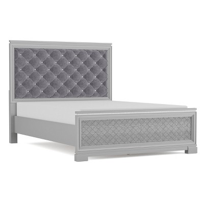 HOMES: Inside + Out Eastern King Tenaya Glam Bed with Button Tufted Headboard Silver: Upholstered Polyester Frame