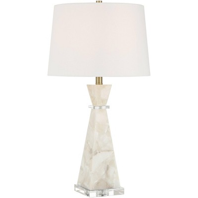 Possini Euro Design Marcy 28" Tall Modern Glam Table Lamp White Finish Alabaster Single White Shade Living Room Bedroom Bedside Nightstand House
