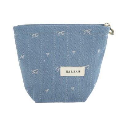 Unique Bargains Heart-shaped Embroidered Bow Makeup Bag 1 Pc
