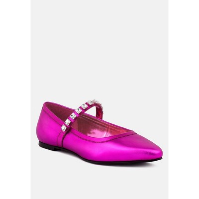 Alverno Metallic Diamante Mary Jane Leather Flats