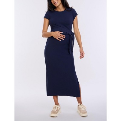 PinkBlush Pink Textured Maternity Midi Dress