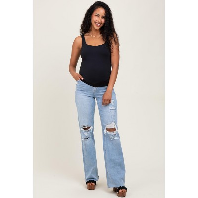 Pinkblush Blue Front Seam Super Wide Leg Maternity Jeans