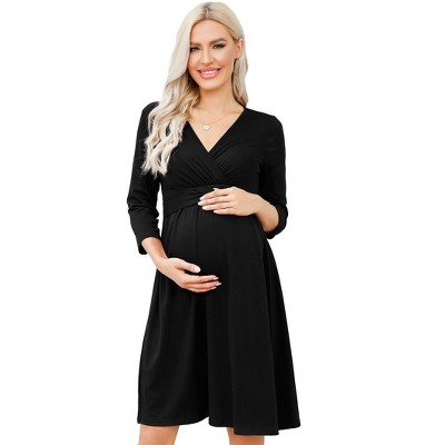 Pokkori Maternity V Neck Contrast Pleated Dress
